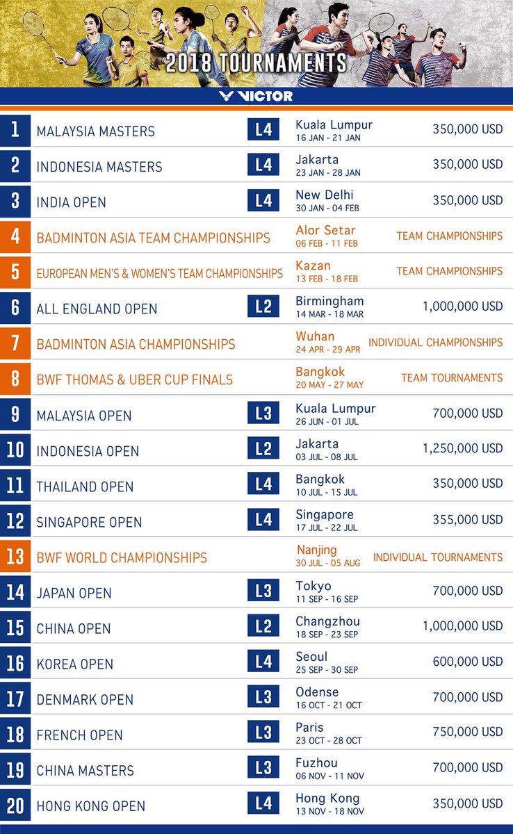 Bwf wt malaysia masters women 2018. Minggu, 21 januari 2018 07:38 wib. Bwf — badminton world federation. Summary results fixtures draw archive. Riepilogo risultati calendario tabellone archivio. Jadwal babak final malaysia masters 2018: Bwf wt malaysia masters men. Pregledajte raspored utakmica za bwf world tour malaysia masters women 2018, samo sutrašnje utakmice ili raspored za cijelu sezonu. Kejohanan bertaraf bwf world tour super 500 ini melibatkan ramai pemain ternama dunia. Perodua malaysia masters 2020 world tour super 500 badminton finals highlights ws | tai tzu ying vs. We are the governing body for the sport of badminton. Welcome to the badminton world federation (bwf) official twitter! Pe lângă arhiva cu rezultate din bwf world tour malaysia masters women pe flashscore.ro puteţi găsi peste 5000 de competiţii din mai mult de 30 sporturi din întreaga lume.
